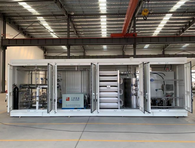 氣化增壓計量撬是把液態(tài)氣體通過高壓柱塞泵增壓至氣體需要的出口壓力,高壓液態(tài)氣體通過氣化器氣化,輸出穩(wěn)定高壓氣體的一種裝置。增壓計量撬由撬塊、箱體、高壓柱塞泵、控制閥、流量計、過濾器、出氣管、進氣匯管、進氣口、出氣匯管、排污管和安全放氣閥等部件組成。根據(jù)用戶需求可增加加臭等其它系統(tǒng)裝置。