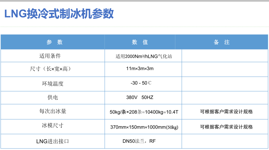 我公司最新研發(fā)生產(chǎn)的新型的LNG換冷式制冰機(jī),可以將LNG中的冷能進(jìn)行有效利用--制成冰塊,冰塊用于生產(chǎn)和日常生活中,變廢為寶,可獲得可觀的經(jīng)濟(jì)效益。